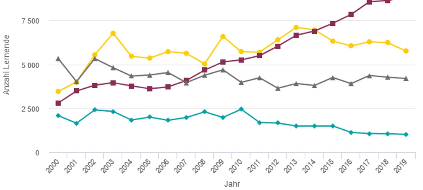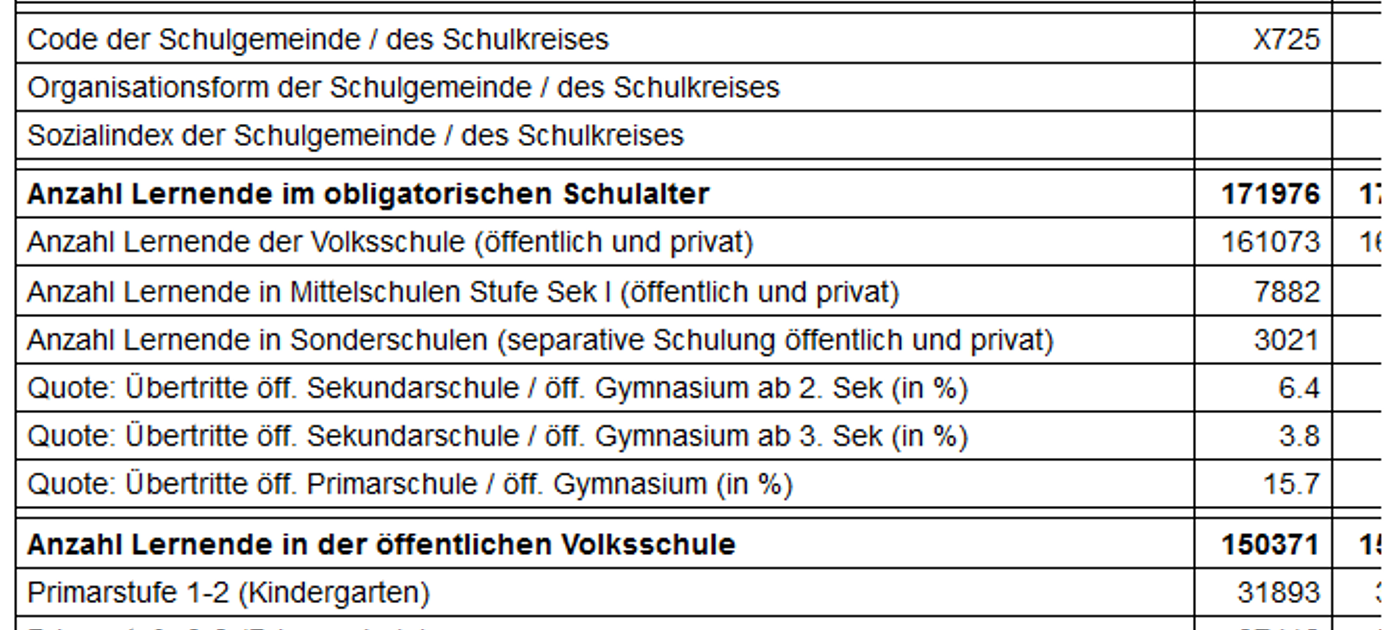 Bildungsstatistische Kennzahlen werden hier in thematische Inhaltselemente zusammengefasst. Jedes Inhaltselement beleuchtet ein Thema aus verschiedenen Blickwinkeln in Form von Tabellen und Grafiken.