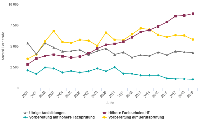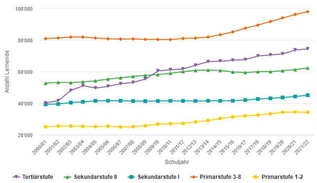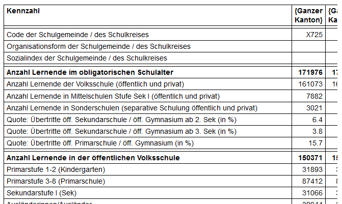 Bildungsstatistische Kennzahlen werden hier in thematische Inhaltselemente zusammengefasst. Jedes Inhaltselement beleuchtet ein Thema aus verschiedenen Blickwinkeln in Form von Tabellen und Grafiken.